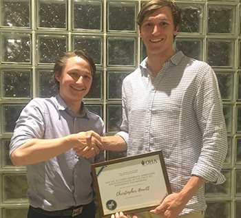 Kim O'Brien (R) YH Chair presenting Matthew McAlpine (L) with his Endeavour Award.